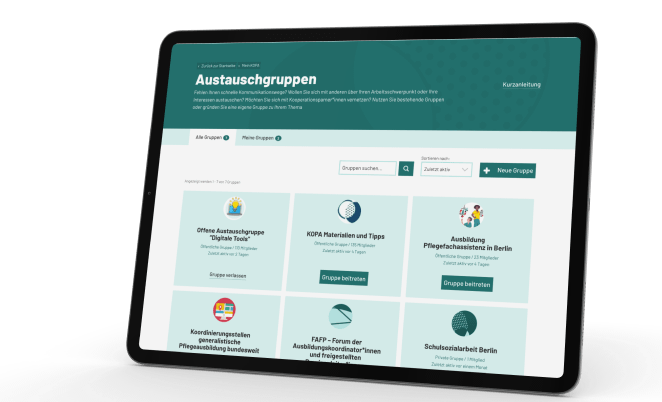 Gerne können Sie sich selbst ein Bild von der Plattform machen unter: https://kopa-berlin.de/. Für die internen Bereiche ist eine Registrierung notwendig.