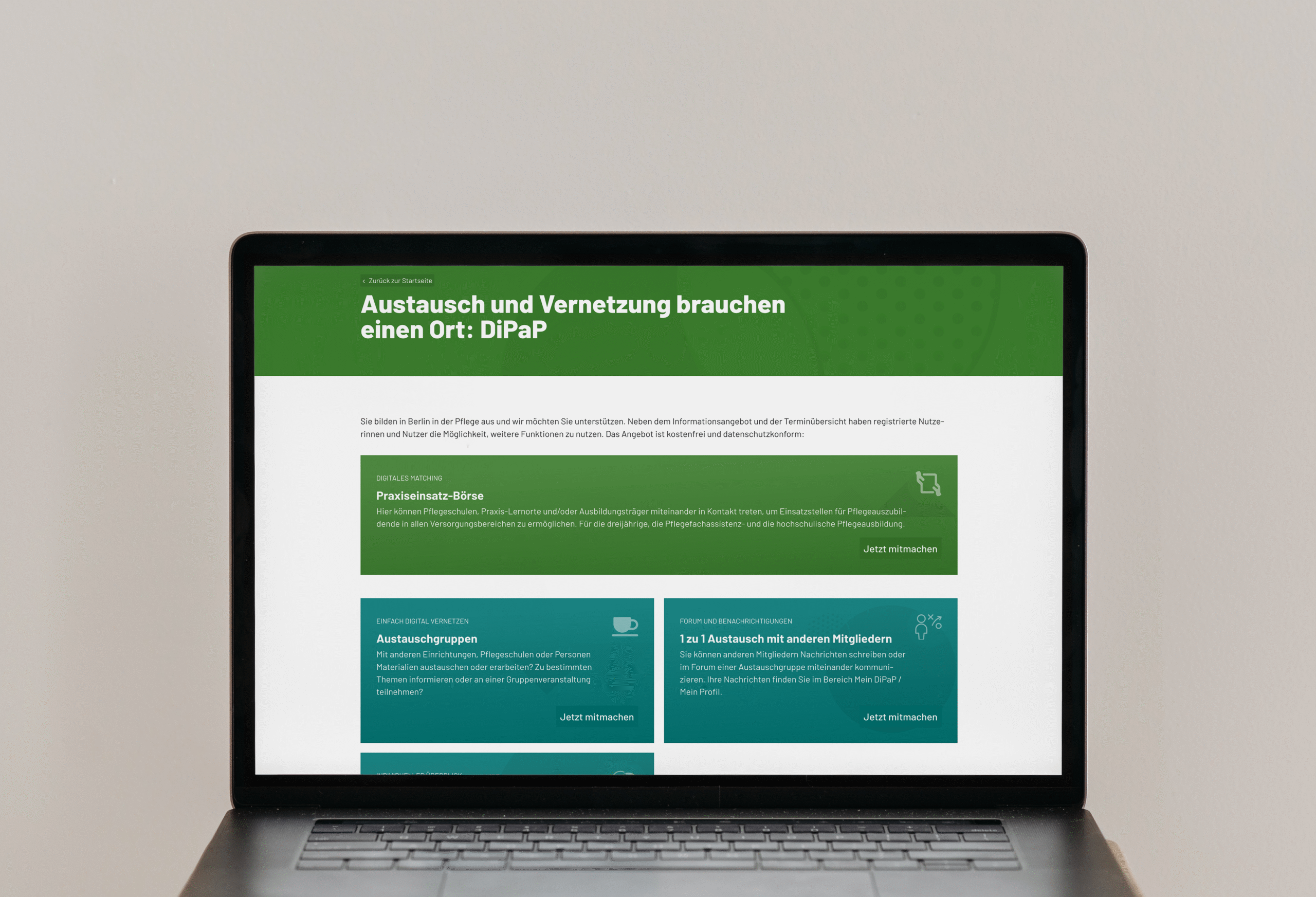 DiPaP (Digitalplattform für die Plegeausbildung mit Praxiseinsatzbörse) ist eine Plattform-Software für Koordinierungsstellen in der Plegeausbildung. Sie eignet sich insbesondere für den Einsatz auf Landesebene.
