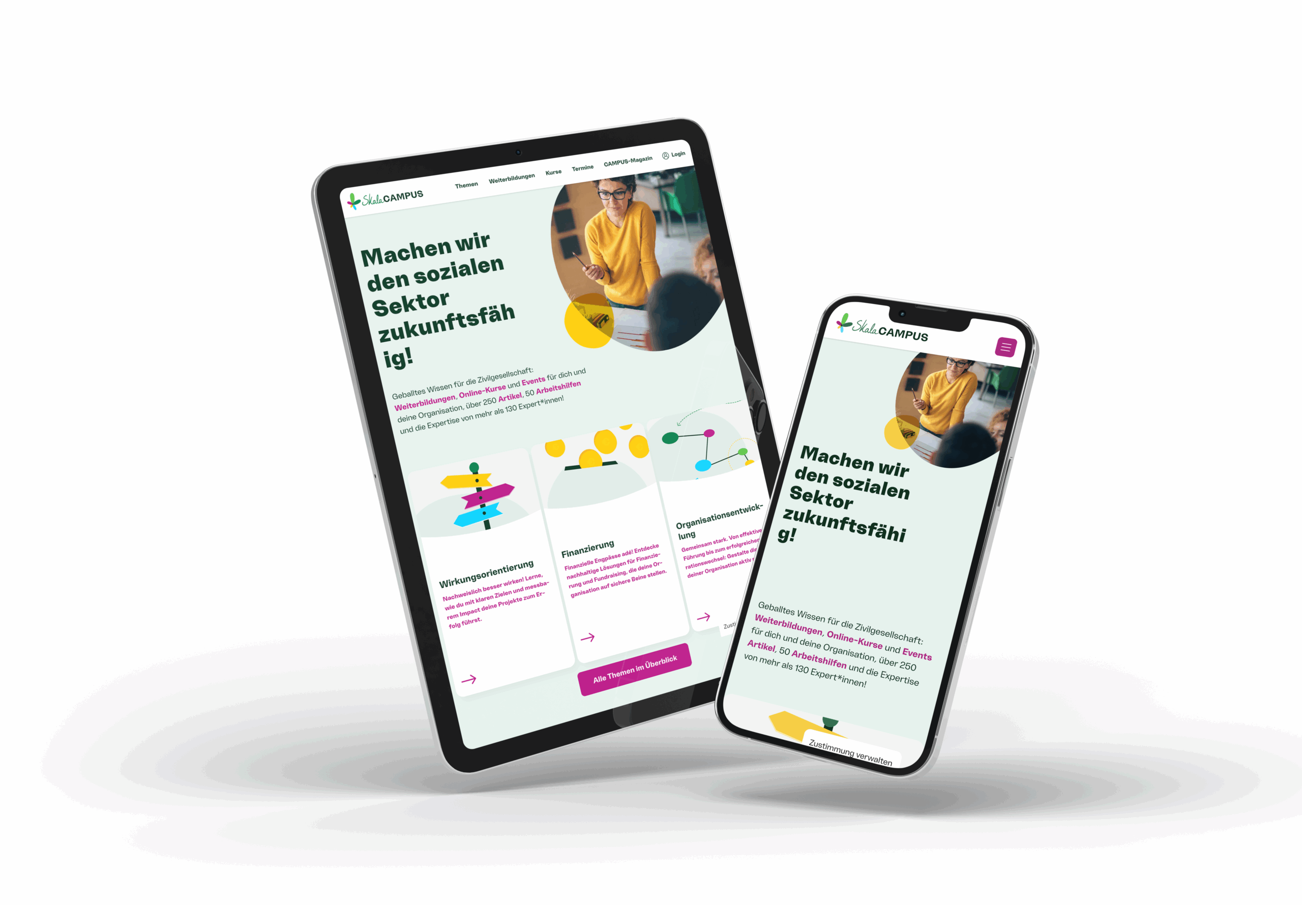Website von Skala Campus auf einem Tablet und einem Smartphone
